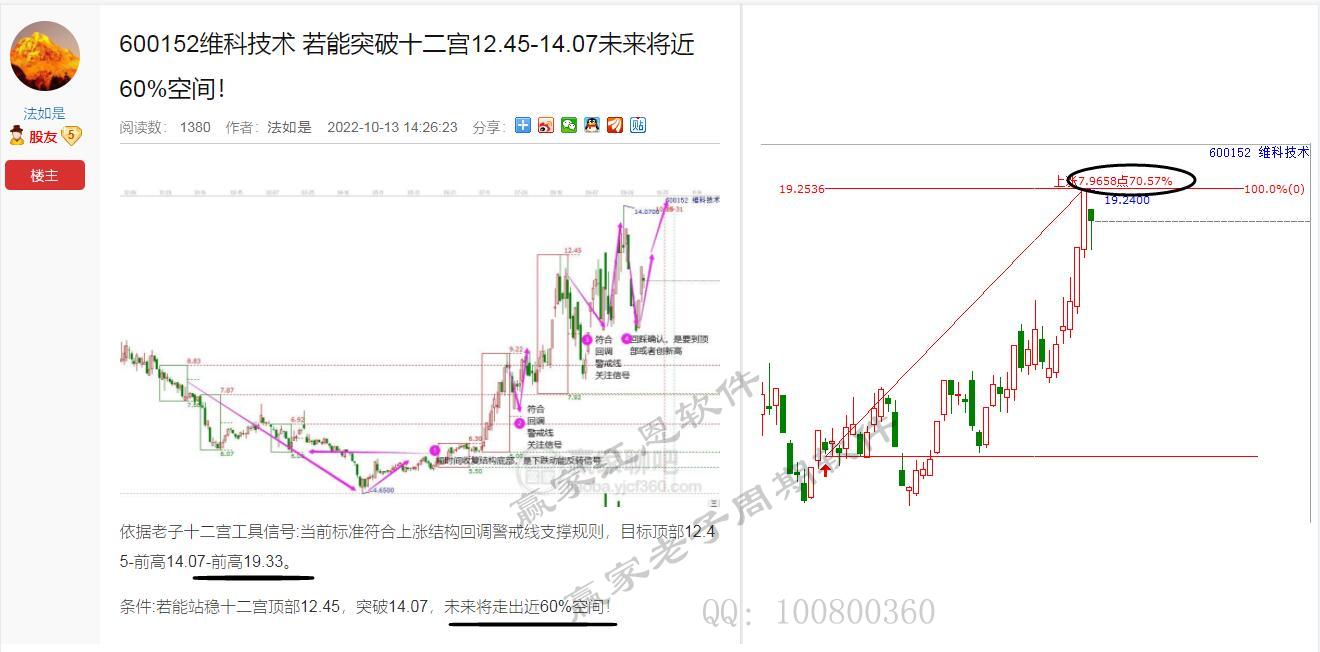 回顧驗證:10月13號運用江恩工具信號選出后,波段持續(xù)上攻!當突破預測的14.07元開始給板加速抵達目的地19.33元??臻g到達后,就是止盈位。走出70%上行利潤兌現(xiàn)!