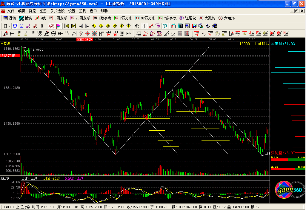 贏家江恩證券分析系統(tǒng),1999年研發(fā)問世,迄今22年,專注技術(shù)分析,專注江恩理論研究,專注散戶一整套股市盈利體系的構(gòu)建。該系統(tǒng)基于一整套的江恩理論設(shè)計(jì)研發(fā),適用于股票、期貨、外匯等市場(chǎng),其分析方法獨(dú)特、分析指標(biāo)獨(dú)創(chuàng),一切遵從自然法則。軟件除實(shí)現(xiàn)了江恩經(jīng)典測(cè)市工具,如江恩輪、正方形、六角形、角度線、江恩計(jì)算器、時(shí)間及價(jià)格循環(huán)線等之外,還依據(jù)贏家團(tuán)隊(duì)多年的研究開發(fā)了許多極具實(shí)戰(zhàn)價(jià)值的工具和指標(biāo),如極反通道、24節(jié)氣、轉(zhuǎn)折日提示等。