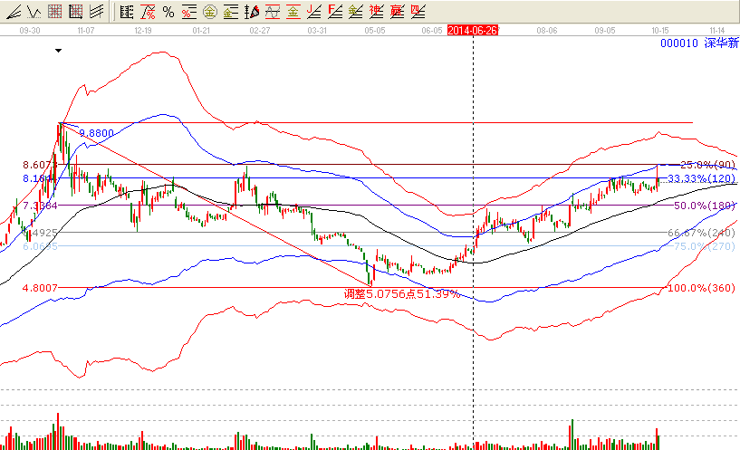 從圖中可以看出如果該股近期突破25%的位置,將繼續(xù)看高一線,如果不能突破我們就需要注意生命線位置的支撐點(7.50附近)了,破了就懂的止損出來。