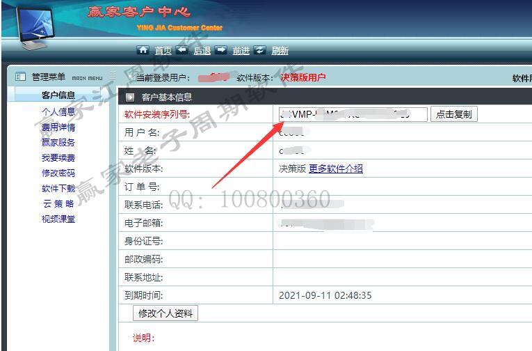 3.如下圖所示,在此位置復(fù)制“軟件安裝序列號”