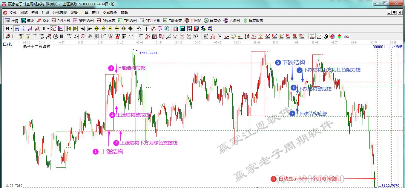 上漲結(jié)構(gòu)的完成,往往是短線或波段上漲能量的衰竭點(diǎn)。贏家十二宮所呈現(xiàn)出的頂?shù)撞烤嬖谕昝赖纳衿姹壤P(guān)系,神奇更需要運(yùn)用專業(yè)的角度去看待,審時度勢。首先,確認(rèn)一波上漲結(jié)構(gòu)先要看趨勢的回調(diào)力度,且觀察目前是否處于下跌的支撐位,其次,判斷不同的大小周期可通過相應(yīng)的大小結(jié)構(gòu)趨勢做屬性分析,最后,再結(jié)合贏家時間周期確認(rèn)時間轉(zhuǎn)折點(diǎn),以便確認(rèn)方向的選擇。