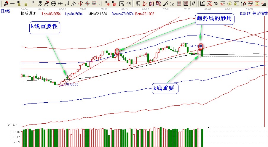 周5 的非農(nóng)數(shù)據(jù)導(dǎo)致美元的一個(gè)下跌,在以前的帖子中提到過,美元指數(shù)短期將有一波不小的調(diào)整,現(xiàn)在的情況看,美元指數(shù)按照以前說的運(yùn)行,趨勢(shì)線回踩后然后進(jìn)行下一輪的下跌,這也再次的驗(yàn)證了趨勢(shì)線的魅力,再次驗(yàn)證了技術(shù)提前消息,消息只是技術(shù)的催化劑,讓行情演繹的更波瀾壯闊下罷了。